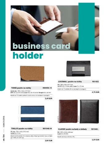 str. 134 Puzdro na 15 vizitiek z PU s textúrou látky. Obsahuje pliešok z kovu vo farbe Puzdro na karty a doklady z PU. 5,59 EUR