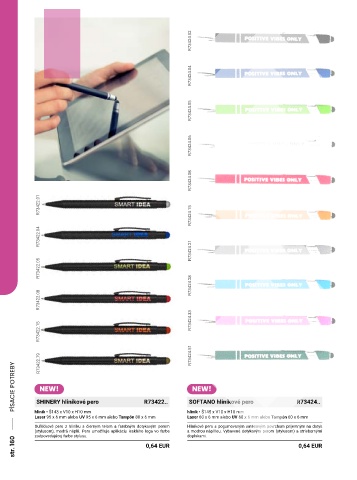 (stylusom), modrá náplň. Pero umožňuje aplikáciu lesklého loga vo farbe a modrou náplňou. Vybavené dotykovým perom (stylusom) a striebornými