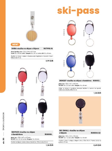 str. 86 Visačka na skipas z plastu a kovu s karabínou. Dĺžka šnúrky 86 cm. Visačka z plastu na skipas s klipom z kovu. Dĺžka 90 cm. Priemer plochy na