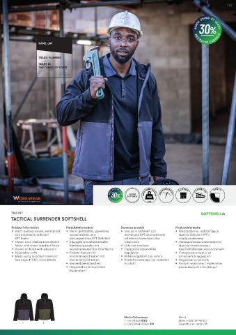 • Warm backed woven, waterproof • Warm gefüttertes, gewebtes, • Giacca in Softshell con • Wodoodporna i oddychająca