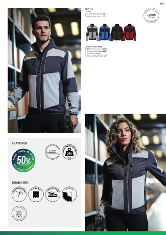 109 TRA753 Unisex Sizes XS-3XL (EU 46-62) Quantity per carton 16 1. 2. 3. 4. Unisex Colourways 1. Mineral Grey/Ash 00G 2. Strong Blue/Navy N5F 3. Ash/Black 61G 4. Classic Red/Black 51P FEATURES BRANDING