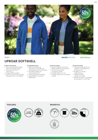 • Warm-backed softshell fabric • Softshell-Gewebe mit • Tessuto Softshell con interno • Ciepło podszyty elastyczny