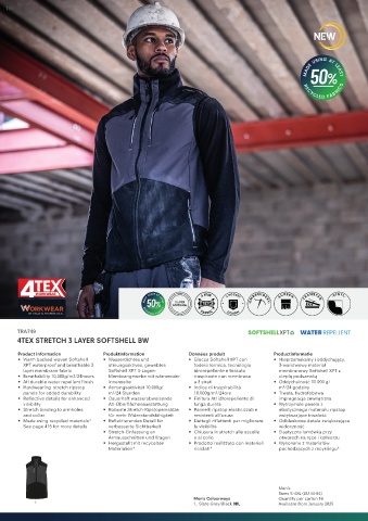 • Warm backed woven Softshell • Wasserdichtes und • Giacca Softshell XPT con • Nieprzemakalny i oddychający,