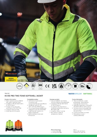 • Certified to EN ISO 20471:2013 wasserabweisender Oberfläche • Certificato EN ISO 20471:2013 impregnacją zewnętrzną