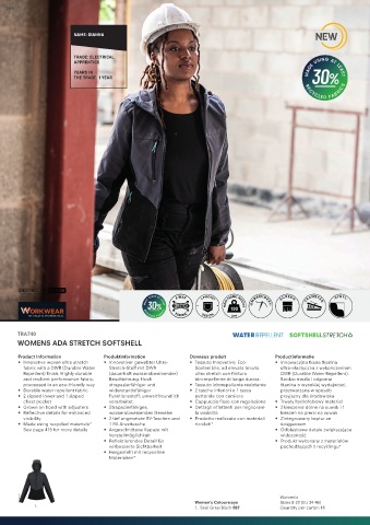 Repellent) finish. Highly durable (dauerhaft wasserabweisender) ultra stretch con finitura DWR (Durable Water Repellent).