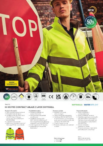 • Certified to EN ISO 20471:2013 • Softshell-Material perfekt • Tessuto Softshell stampabile • Tkanina Softshell do druku