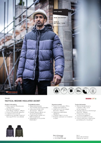 • Grown on hood with adjusters • Fixierte Kapuze Kapuze mit • Cappuccio espandibile Warmloft - 300gsm