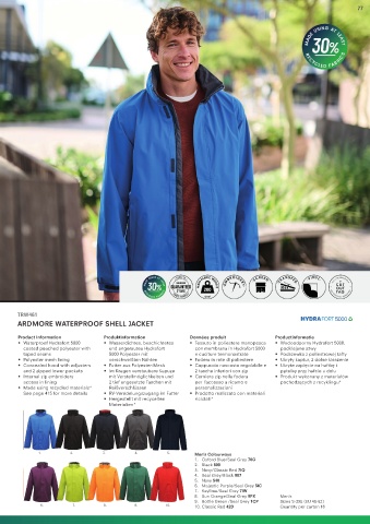 • Concealed hood with adjusters • Futter aus Polyester-Mesh • Cappuccio nascosto regolabile e • Ukryte zapięcie na haftkę i