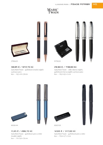 Sada Mark Twain – guľôčkové (modrá náplň) Sada Mark Twain – roller (čierna náplň),