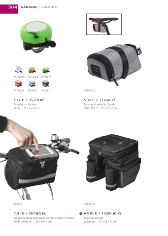 Zvonček na bicykel Taška pod sedadlo bicykla