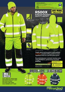 R906X HOODED RECYCLED MICROFLEECE JACKET R500X RIPSTOP PADDED SAFETY JACKET