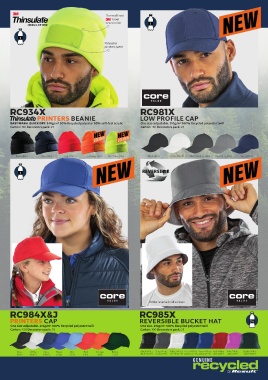 Recycled versions of our classic super warm beanies and baseball caps. PRINTERS CAP REVERSIBLE BUCKET HAT