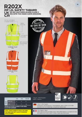 NOTE: THESE GARMENTS SHOULD BE WORN Deux bandes de sécurité verticales au niveau des épaules et deux bandes horizontales sur le NOTE: THESE GARMENTS SHOULD BE WORN 100% Polyester 120g/m 2