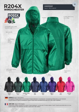 R204X UK 38 41 44 47 50 COUPE-VENT : 56g/m 2 100% Polyester