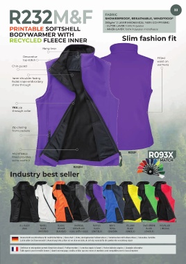 R232M: S-4XL NOTE: TEST TO ENSURE INKS L’intérieur en micropolaire permet d’avoir bien chaud | Protège-menton | Fermeture zippée à l’avant | Poches latérales zippées | Surpiqûre décorative