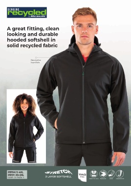 CASE: 20 PACK: 5 3 LAYER SOFTSHELL Tissu recyclé utilisant les matériaux respectueux à l’environnement fabriqués à partir de bouteilles en plastiques et de déchets industriels, offrant une alternative durable aux fils traditionnels.