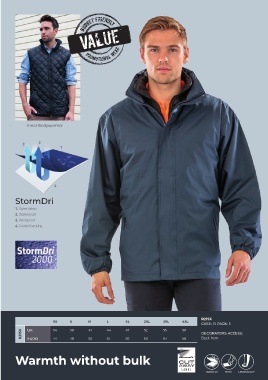 StormDri 2000 mit voll versiegelten Nähten | Auszippbare wasserabweisende, wattierte Weste | 2 Taschen vorne mit Regenblende bei der Außenjacke