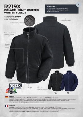 SUPER WARM FLEECE R219X OUTER: 280g/m 100% Polyester fleece