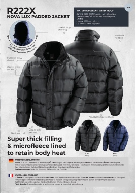 V ALUE NOVA LUX PADDED JACKET FILLING: 550g/m 100% hand filled Polyester