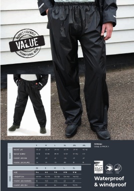 SINCE 1972 RAIN TROUSER FABRIC: 200g/m 100% Polyester with PVC coating