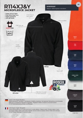 R114X UK 34 38 41 44 47 50 53 200g/m 2 100% Polyester Microfleece