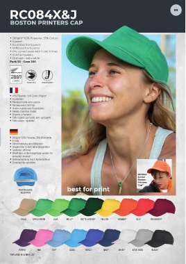 • 100% coton sous la visière • Schirmunterseite aus 100% Baumwolle