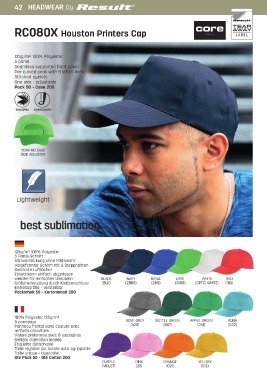 Visière préformée avec 6 surpiqûres Taille réglable par bande auto-agrippante