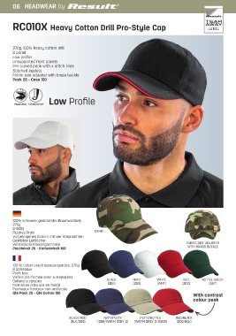 RC010X Heavy Cotton Drill Pro-Style Cap RC018J Junior Low Profile Cotton Cap