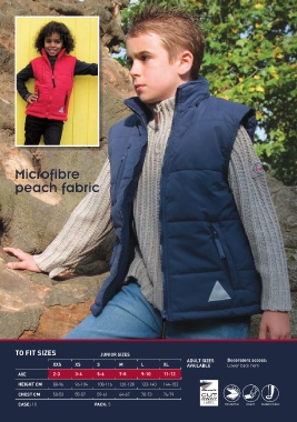 AGE 2-3 3-4 5-6 7-8 9-10 11-12 Brusttasche mit Reißverschluss | Microfaser mit samtweicher Endbehandlung | Horizontal gesteppte Außenseite