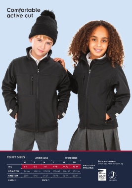 AGE 3-4 5-6 7-8 9-10 11-12 13-14 ADULT SIZES 2 Seitentaschen mit Reißverschluss | Ärmelbündchen mit Sicherheitsreflektoren | Weiches, sportliches, dehnfähiges Material