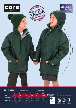 CASE: 10 PACK: 5 TRANSFER PRINT EMBROIDERY classe de l’enfant | Coutures thermocollées entièrement imperméables | Bande de sécurité réfléchissante dans le bas du dos | Coupe longue