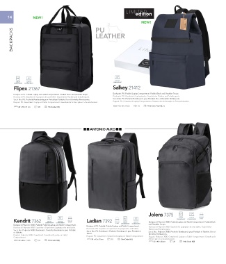 Backpack. Polyester 600D. Padded. Padded Laptop and Tablet Compartment. Backpack. PU. Padded. Padded Laptop and Tablet Compartment. and Shoulder Straps.
