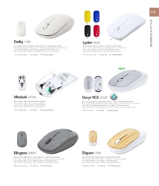 Mouse. Polyester RPET. Wireless. Optical. DPI Button. 1 Battery AA Not Included. Mouse. Bamboo/ ABS. Wireless. Optical. 1 Battery AA Not Included.
