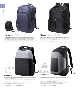 Anti-Theft Backpack. Polyester 900D. USB Connection. Padded Laptop and Tablet Compartment. Padded Back Charger Backpack. Polyester 1200D. Solar Panel 6,5W. USB Connection. Padded Laptop and Tablet
