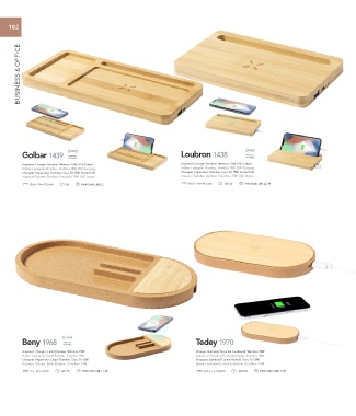 Organizer Charger. Cork/ Bamboo. Wireless 15W. Charger. Bamboo/ Recycled Cardboard. Wireless 10W.