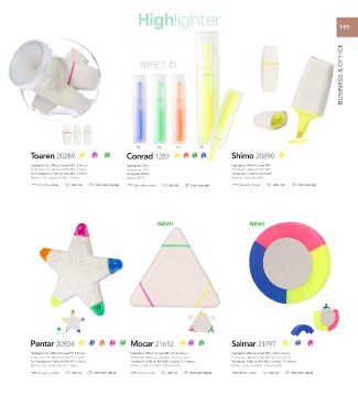 Highlighter Set. Wheat Straw/ PP. 5 Pieces. Highlighter. Wheat Straw/ ABS. 3 Ink Colours. Highlighter. Wheat Straw/ ABS. 3 Ink Colours.