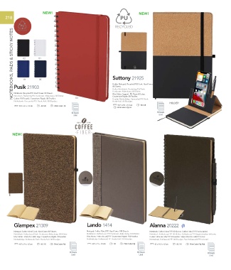 Notepad. Coffee Fibre/ Cork. Hard Cover. 80 Sheets. Notepad. Coffee Fibre/ PP. Hard Cover. 100 Sheets. Notebook. Coffee Fibre/ PP. 80 Sheets. Coffee Fibre/ PP Pen Included.
