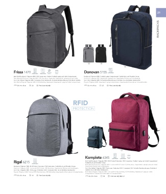Backpack. Polyester 300D. RFID Pocket Protection. USB Connection. Padded Back and Shoulder Straps. Gepolsterter Rücken und Schultergurte.