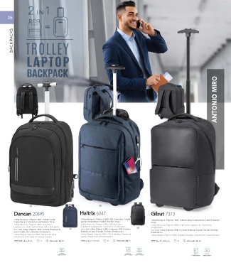 Trolley Backpack. Polyester 300D. Padded Laptop Trolley Backpack. Polyester 300D. USB Connection. Padded Trolley Backpack. Polyester 300D. Padded Laptop Compartment. Padded Shoulder