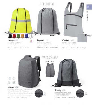 Drawstring Bag. Polyester 190T. Reflective. SUBLIMATION Drawstring Bag. Polyester 210T. Reflective. Foldable Backpack. Polyester 210D RPET.