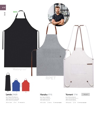 Apron. Polyester/ PVC. Waterproof. Apron. Polyester RPET/ PU. Apron. PU/ Cotton 340 g/ m2.