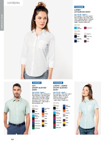 Easy-care fabric • Cut-away boned Easy-care fabric • Soft collar •