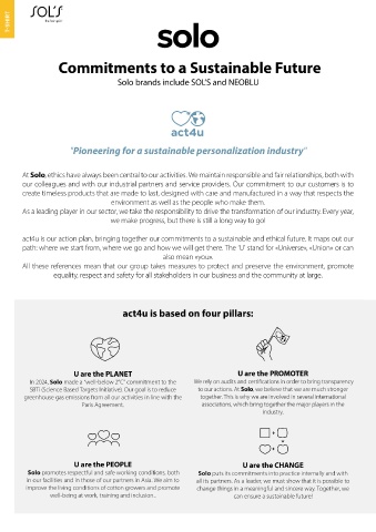 In 2024, Solo made a “well-below 2°C” commitment to the We rely on audits and certifications in order to bring transparency employment with reasonable working hours as well as safe and healthy conditions.