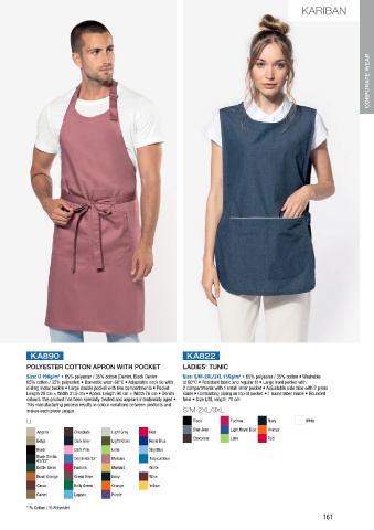 65% cotton / 35% polyester) • Domestic wash 60°C • Adjustable neck tie with at 60°C • Resistant fabric and regular fit • Large front pocket with
