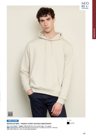 Style: Kangaroo pocket • Hood with drawstring and jersey lining • 2×2 ribbed cuffs and hem • Half moon