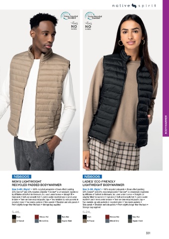 Size: S-4XL 35g/m • 100% recycled polyamide • Down effect padding Size: S-2XL 35g/m • 100% recycled polyamide • Down effect padding