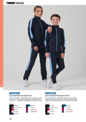 Size: 5/6-13 250g/m • 100% polyester interlock • Contrast colour panels Size: 5/6-13 250g/m • 100% polyester interlock • Slim leg • Contrast