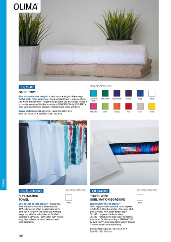 towel with 100% cotton terry on one side and 100% ringspun cotton • Bordure: 100% polyester