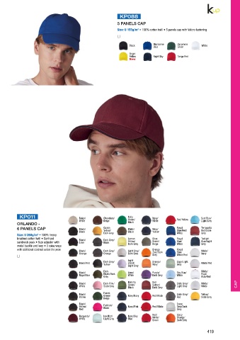 Size: U 155g/m • 100% cotton twill • 5 panels cap with Velcro fastening