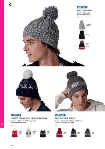 Size: U • 100% acrylic • 100% polyester edge • Size: U • 100% acrylic Fair Isle knit bobble beanie •